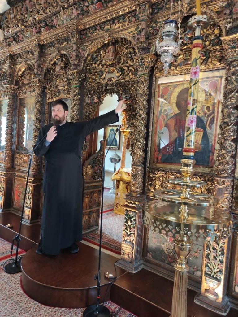 Μετά τη λειτουργική συμμετοχή, ακολούθησε ξενάγηση στο Καθολικό της Ιεράς Μονής από τον Ηγούμενο, π. Αλέξιο Παπαδόπουλο. Οι μαθητές είχαν την ευκαιρία να γνωρίσουν από κοντά στοιχεία της ιστορίας και της παράδοσης της Μονής, καθώς και την ιδιαίτερη αρχιτεκτονική και καλλιτεχνική της φυσιογνωμία.