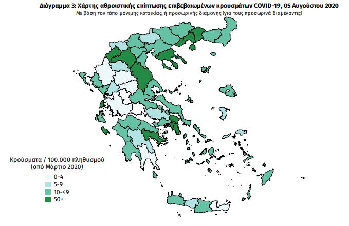Σημειώνεται πως το ένα τρίτο περίπου των νέων κρουσμάτων συνδέεται με προσδιορισμένες εστίες προηγούμενων ημερών.
