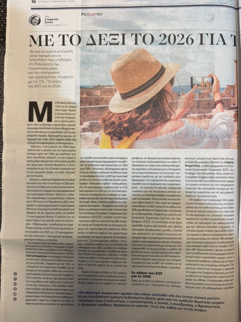 Μάλιστα ο κ. Φιορεντίνος δήλωσε, “Ο Ελληνικός Τουρισμός εισέρχεται στο 2026 ώριμος ισχυρός και αισιόδοξος, αλλά ασφαλώς, χωρίς εφησυχασμός και με εντεινόμενες τις προσπάθειες μας”.